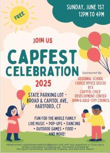May 30, 2025UPDATE - CapFest will take place on its rain date of SUNDAY, JUNE 1, from noon - 4 p.m.