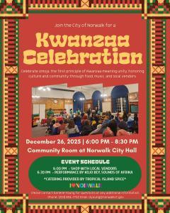 Please read below for information on new laws going into effect in the New Year, a Kwanzaa event in Norwalk, and more!