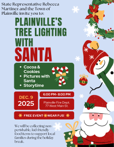 December 9, 2025I hope to see you tonight at Plainville’s annual Tree Lighting Celebration at 6pm at the Plainville Fire Department (77 West Main St.)! ✨