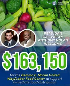 November 7, 2025Great news! The Gemma E. Moran United Way/Labor Food Center has been awarded $163,150 from the State of Connecticut Government Shutdown Relief. This funding will go directly to immediate food distribution, helping families and individuals in our community get the support they need. This is a great start, and we look forward to continuing to fight for more funding to address the ongoing challenges caused by the government shutdown.