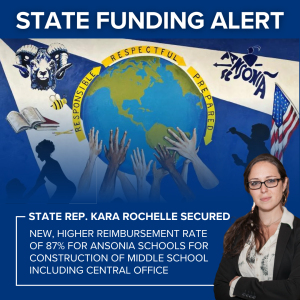 May 8, 2024I have some great news for our district! I've been able to secure an 87% school construction reimbursement rate for Ansonia Middle School, and inclusion of the central office at the same 87% rate as well.