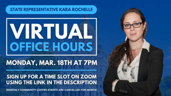 March 13, 2024I will not be able to hold the regular community coffee events that I host every month. Reaching out through these events is one of my favorite things to do, so I will still be holding virtual office hours that any of you can join on Monday, March 18th beginning at 7:00 pm.