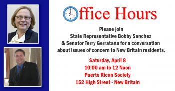 March 31, 2017My colleague, Senator Terry Gerratana and I, will be holding office hours on Saturday, April 8. Please join us!
