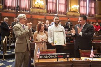 March 8, 2017Today, I had the honor to introduce and welcome Mr. Juan Busanet, a local New Britain hero to the House Chamber.