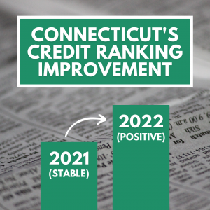 June 1, 2022Connecticut's general obligation bond outlook was just raised from stable to positive by the credit rating agency Standard & Poor’s (S&P). This pivotal economic news is due to our historic payments toward our unfunded liabilities, a record rainy day fund and smart investments in the future of our state.
