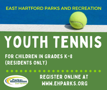 June 9, 2022East Hartford Parks and Recreation Department invites all boys and girls who have completed Grades K-8 to participate in our Youth Tennis Program.