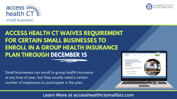 November 30, 2021From now until December 15, small businesses in Connecticut can obtain group health insurance regardless of the number of employees who enroll thanks to Access Health CT's Employee Participation Waiver Period. Any local small business with 50 employees or less that is not currently enrolled through Access Health CT Small Business can participate.