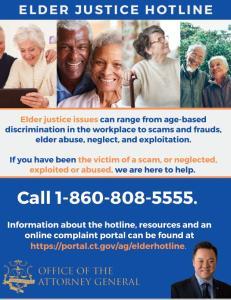 September 30, 2021The State of Connecticut has created a resource to help older residents navigate state services. Operators will be able to provide assistance for various Elder Justice issues, such as aged based discrimination in the workplace to abuse and neglect.