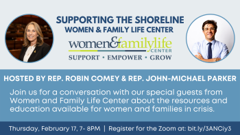 February 8, 2022I along with fellow State Representative Robin Comey (D-Branford) will be hosting an event entitled "Supporting the Shoreline: Women & Family Life Center" on Thursday February 17, 2022 via zoom at 8 p.m.