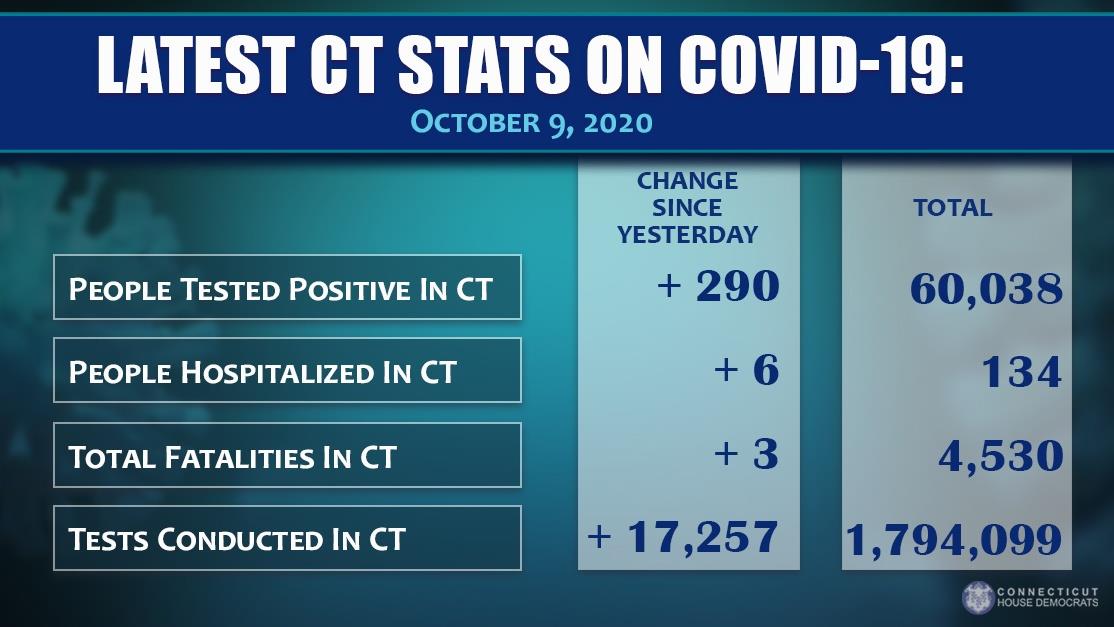 Data on New COVID-19 Cases in Connecticut as of Oct. 9