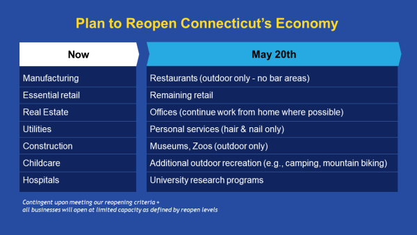 As a result, Governor Lamont announced the goal to begin opening cautiously beginning on May 20th.
